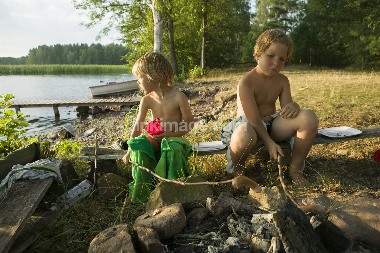 food, summer, sausage, grilling, children, excursion, evening, pending, stick, sun, hunger, two