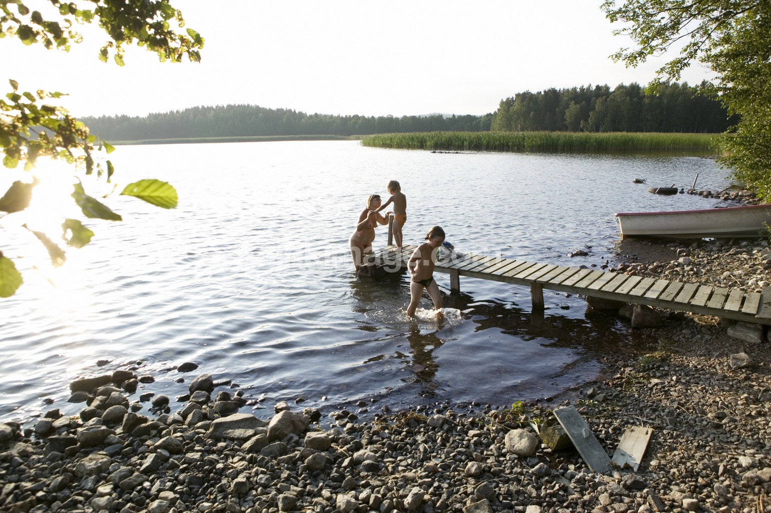mother, children, bath, summer, family, sun, heat, bridge, lake, pregnant, holiday