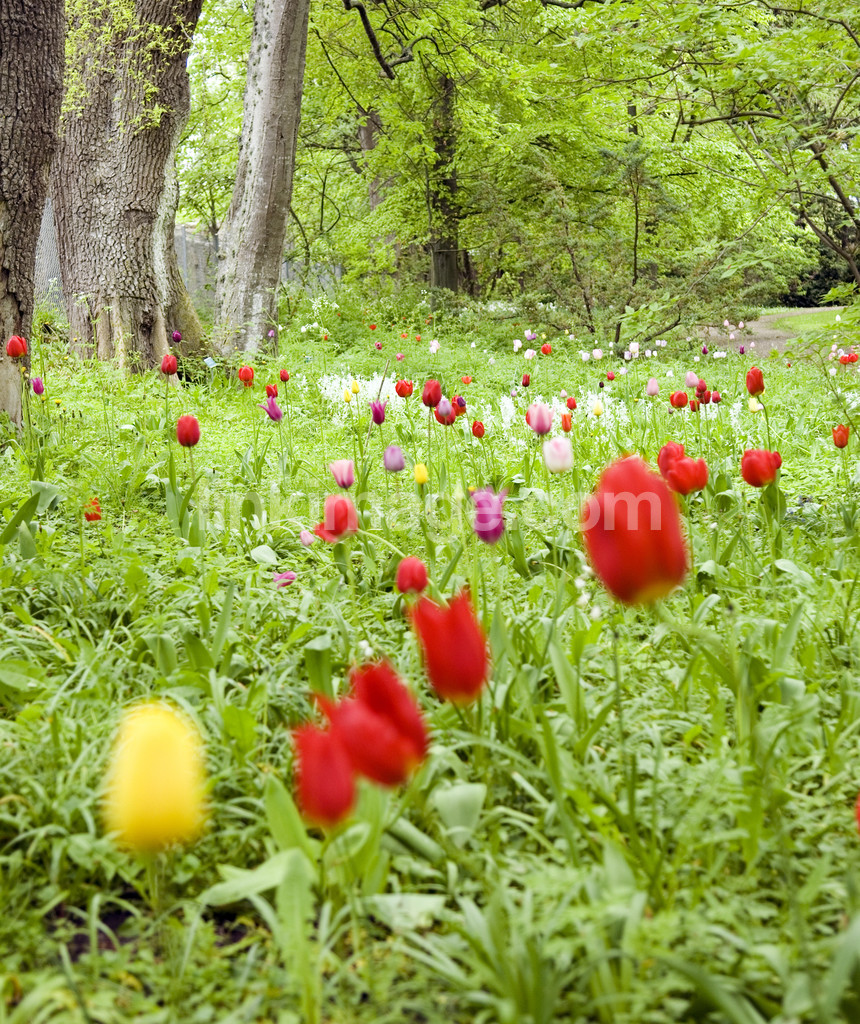 - Wild adult garden with tulips