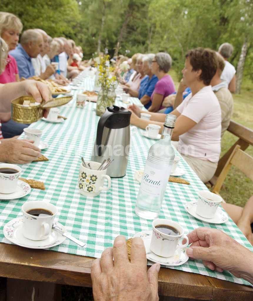 - Coffee table in the summer meadow, gotland, sweden.