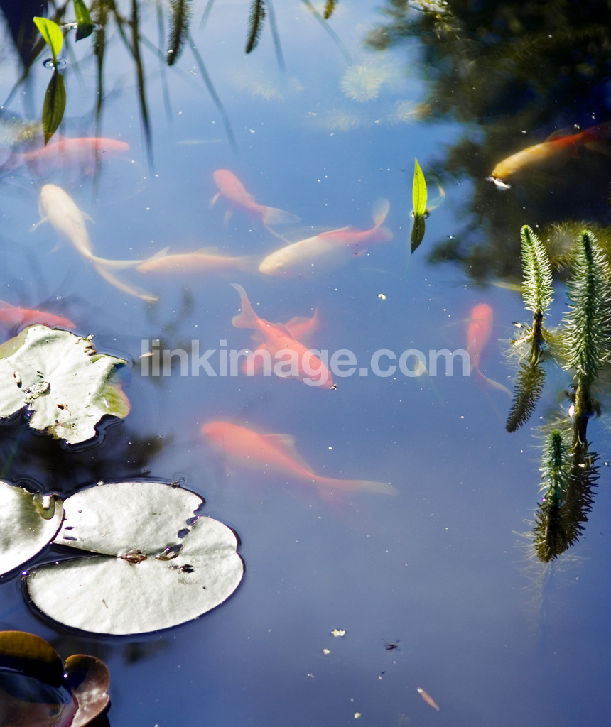 - Goldfish in a pond with water lilies