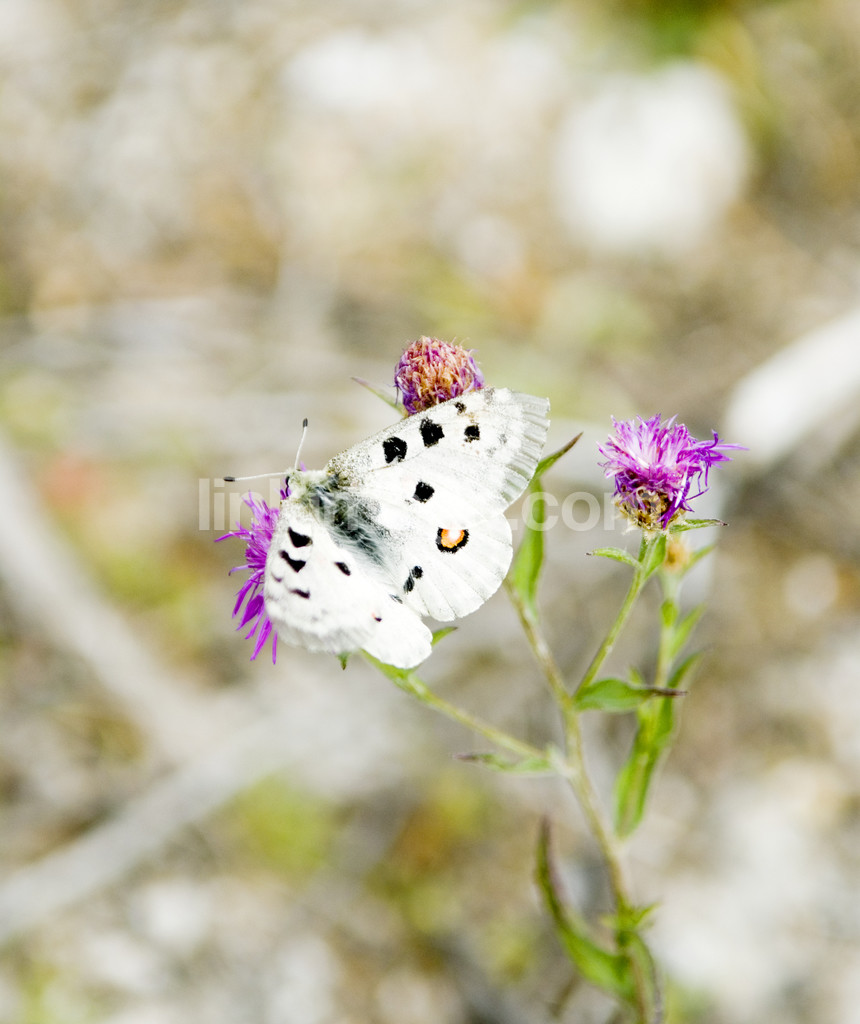 - Apollo butterfly sitting on thistle
