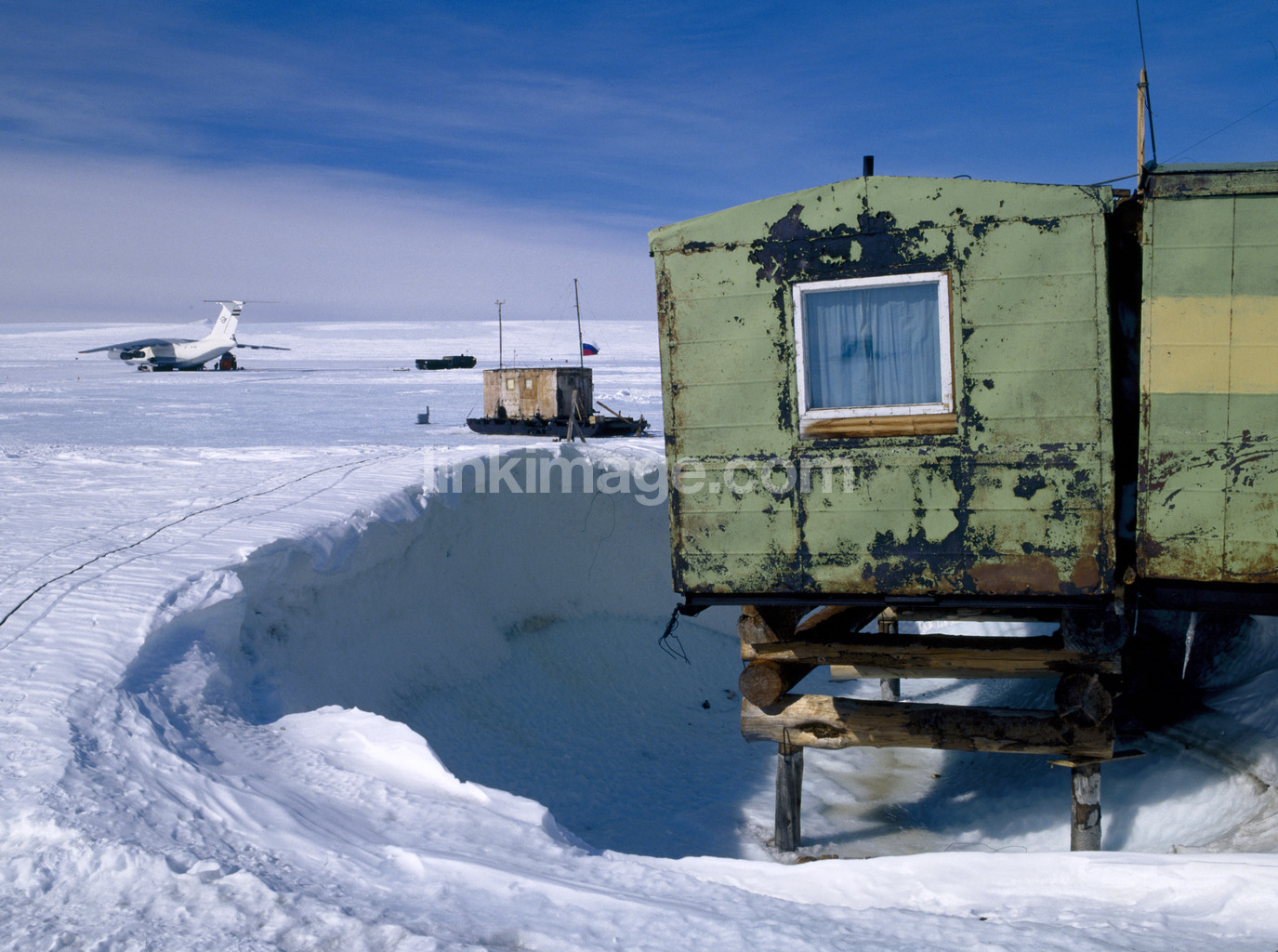 - Main building and radio station in the airfield the russian base novolazarevskaya. antarctica