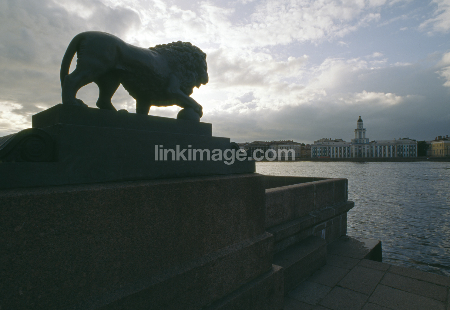 - St. petersburg. leo above admiralty. the background art house and ethnographic museum. st. petersburg
