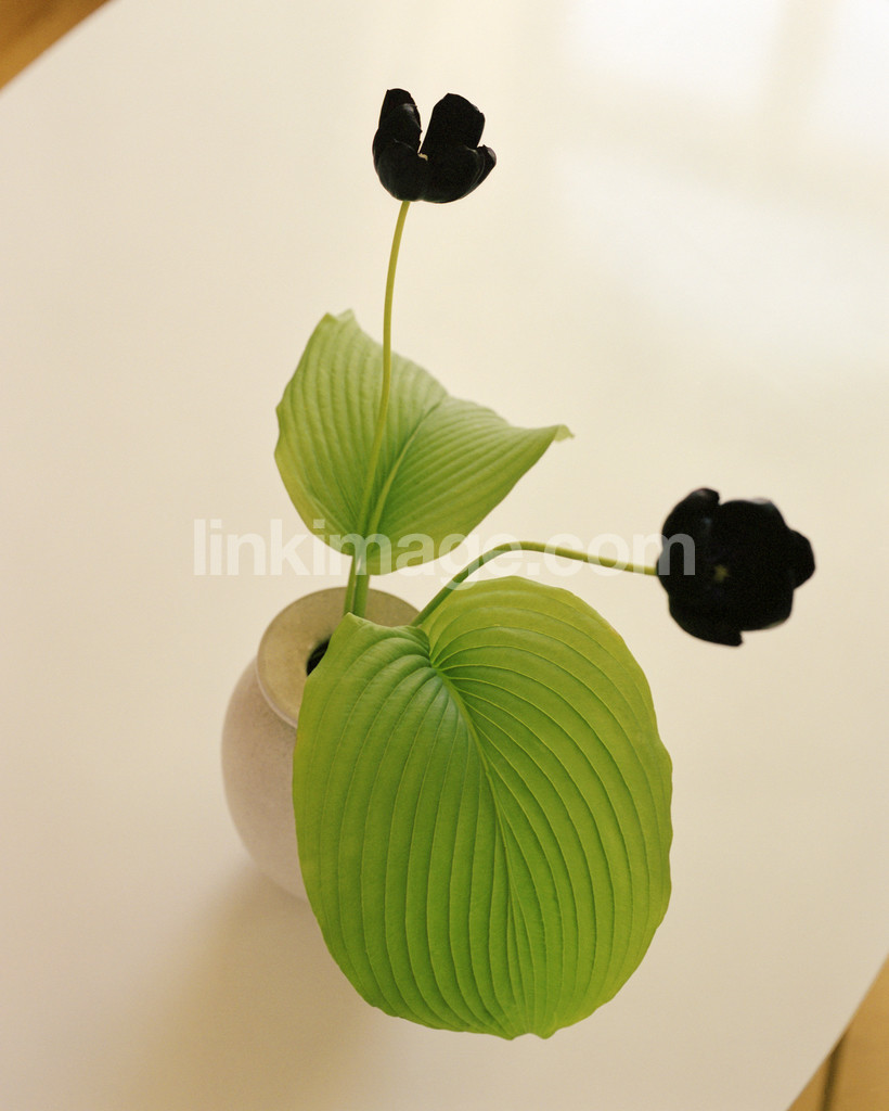 bouquet, flowers, leaf, tulips, green, black, table, vase, still life, stalk, stems