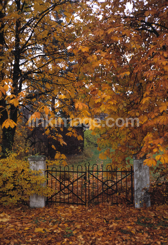 autumn leaves, tree, gate, portal, yellow, fall, season, orange, fate, alone, branches, branch