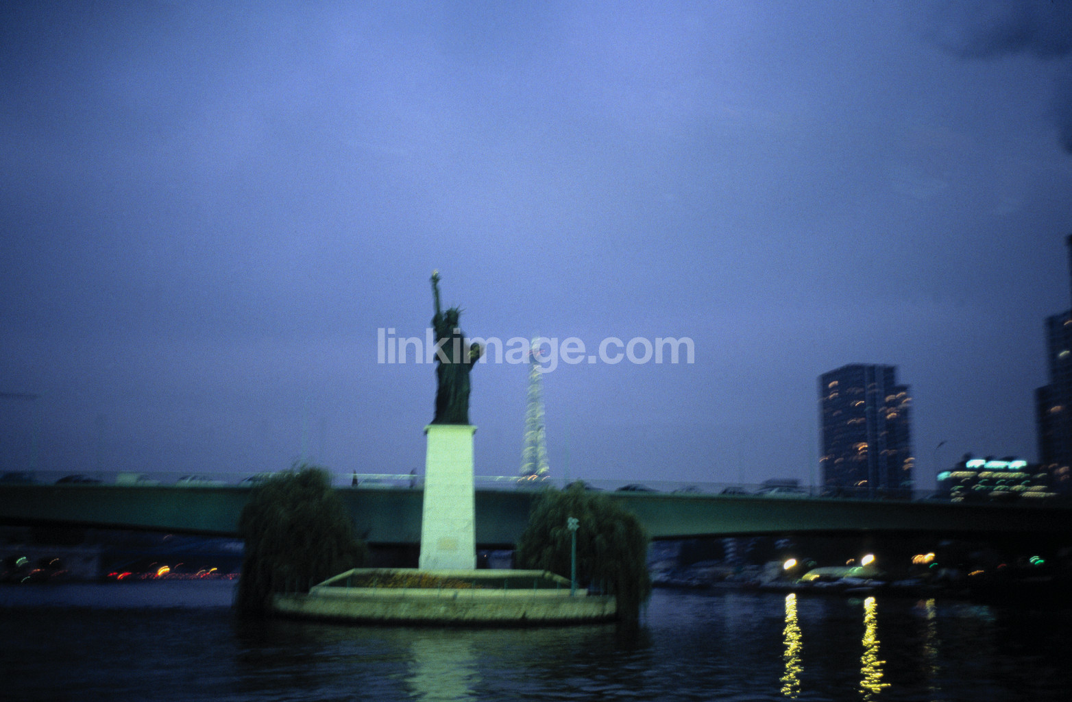 - city, statue, water, evening, bridge, statue of liberty, sculpture, view, views, rise, skyscrapers