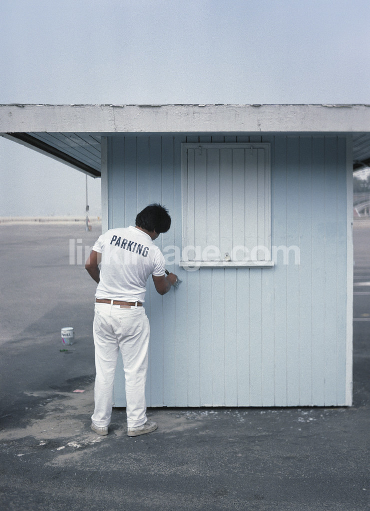 - human, male, paint, renovate, colors, house, building, text, parking, brush, office