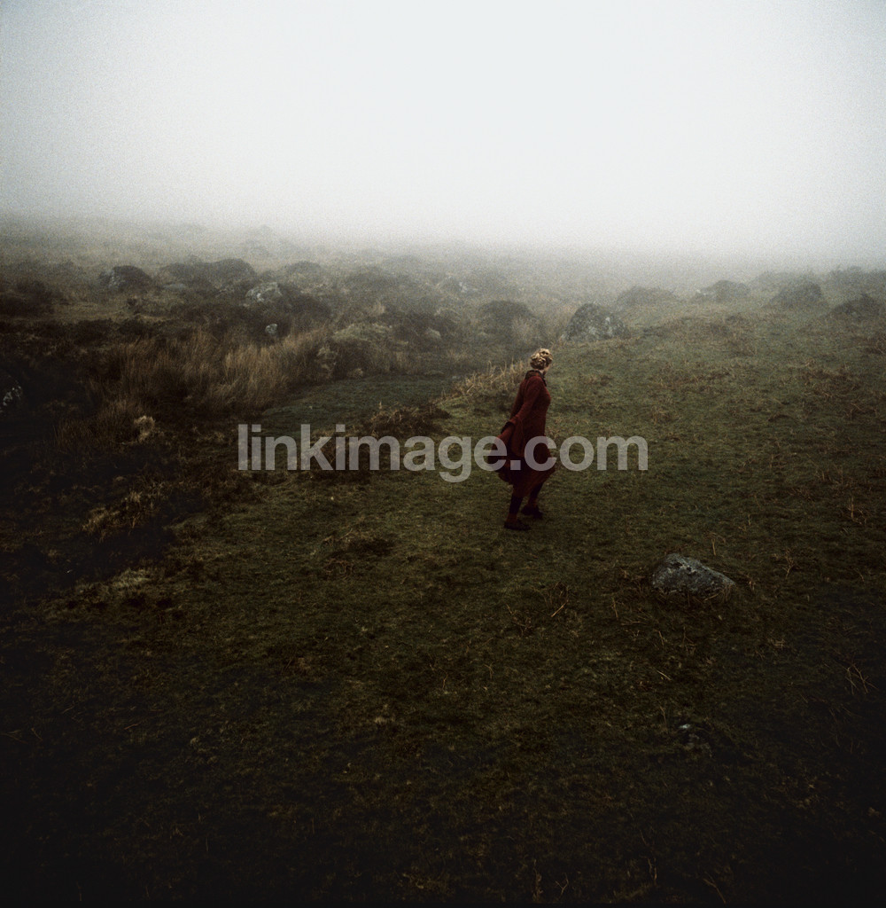 female, spot, fog, heath, stone, nature, fall, alone, fate, haze, rock, horizon