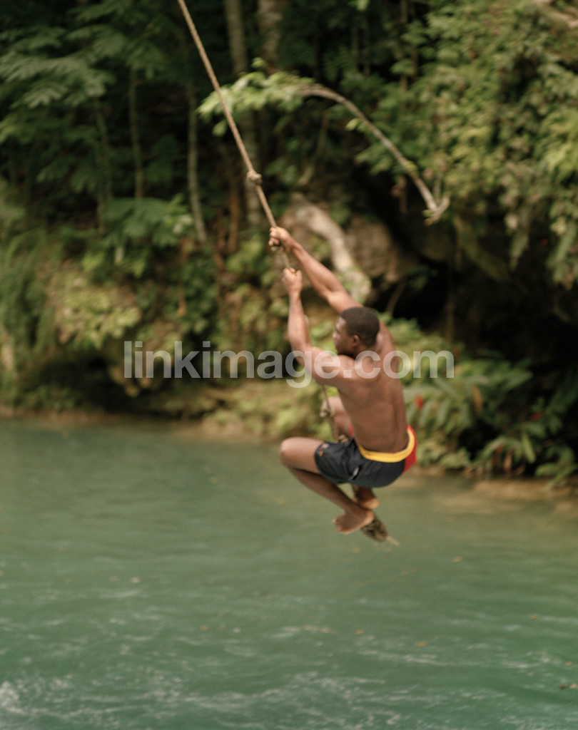 human, male, boy, teen, rep, jump, swim, swing, water, jungle, river, summer, leisure, holiday