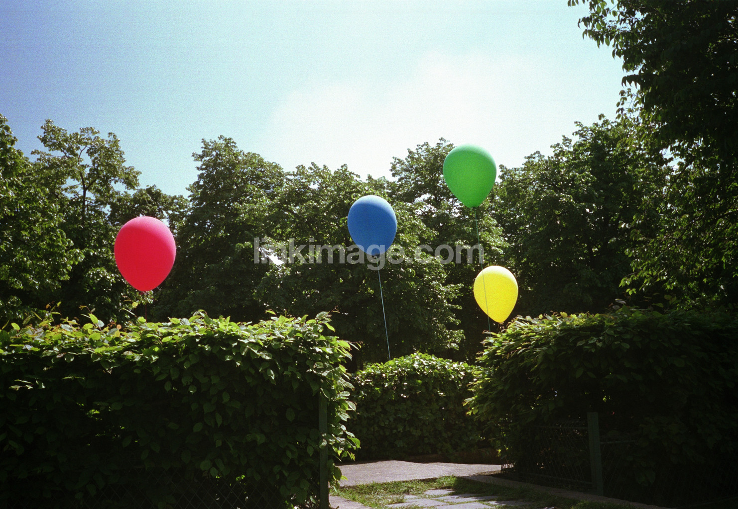 balloons, pleasure, fun, colors, park, bushes, tree, fly, leaf, children, play, round, greens