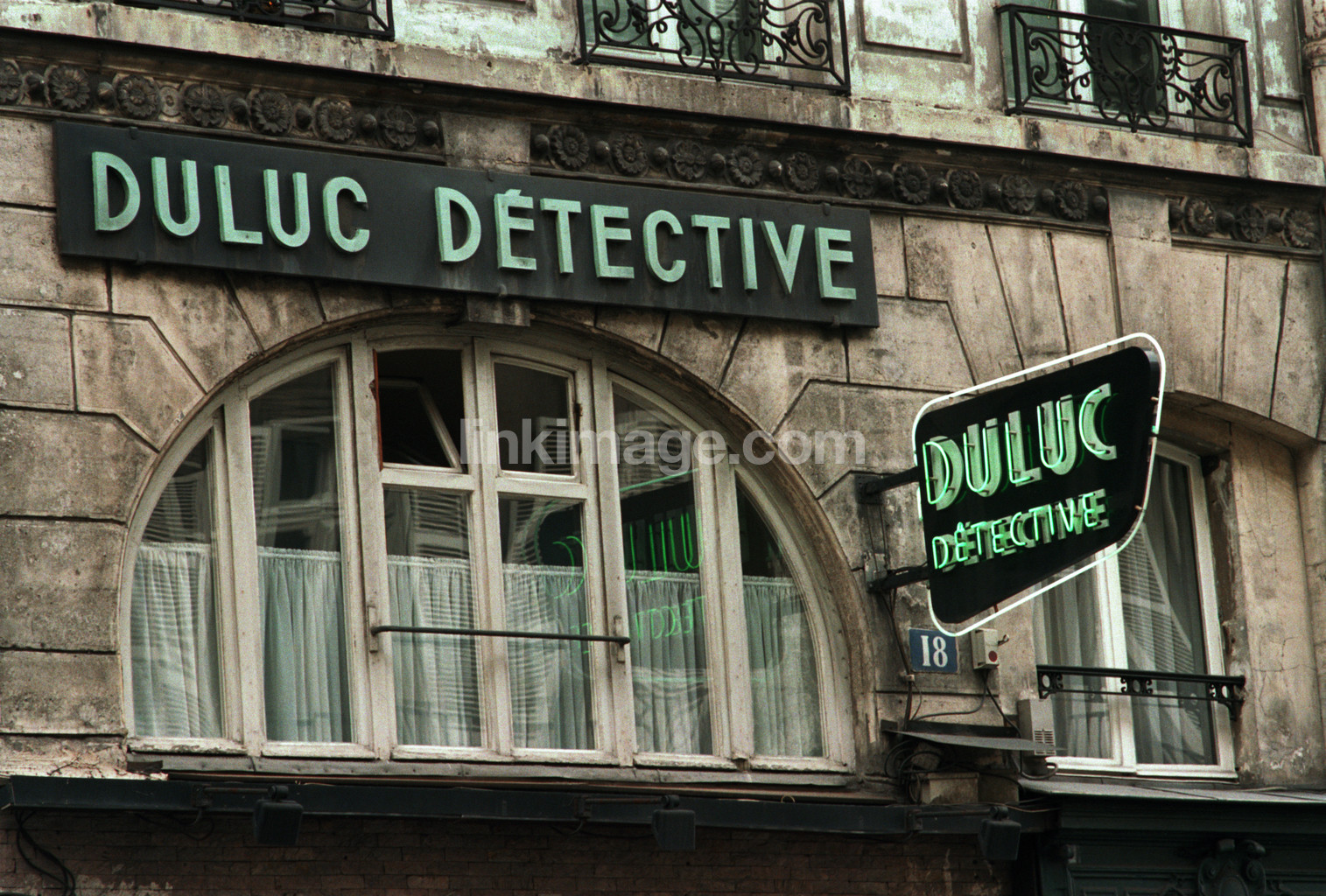 house, building, sign, letters, window, detective, office, work, text, neon, neon lights, bureau