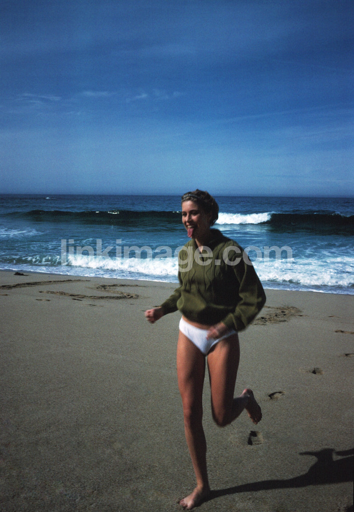 - human, female, run, exercise, health, train, shore, coast, sea, tongue, panties, sand, swim, holiday, unscheduled, beauty