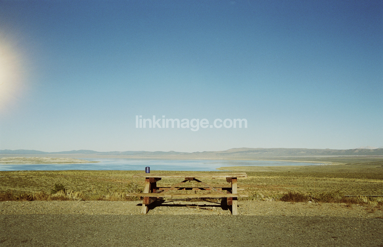 - bench, sun, heat, beer, resting, lake, loneliness, water, oasis