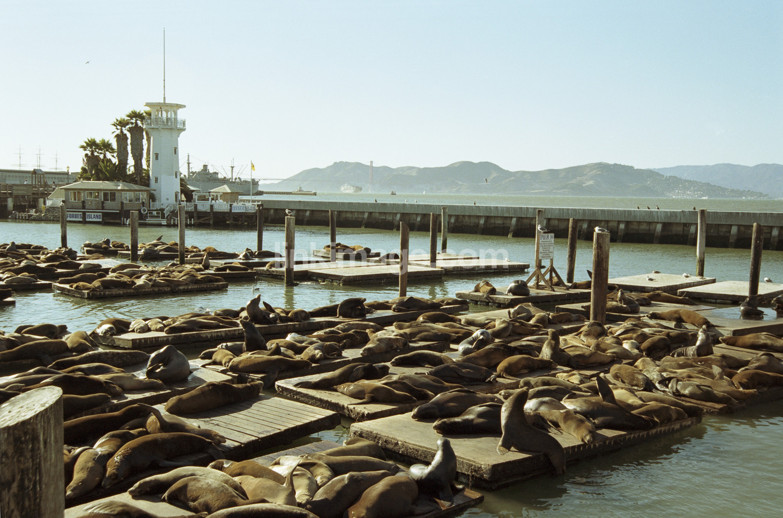 port, sea lions, sunbathing, rest, floc, bridge, summer, sun, sea, seal, laziness, residence