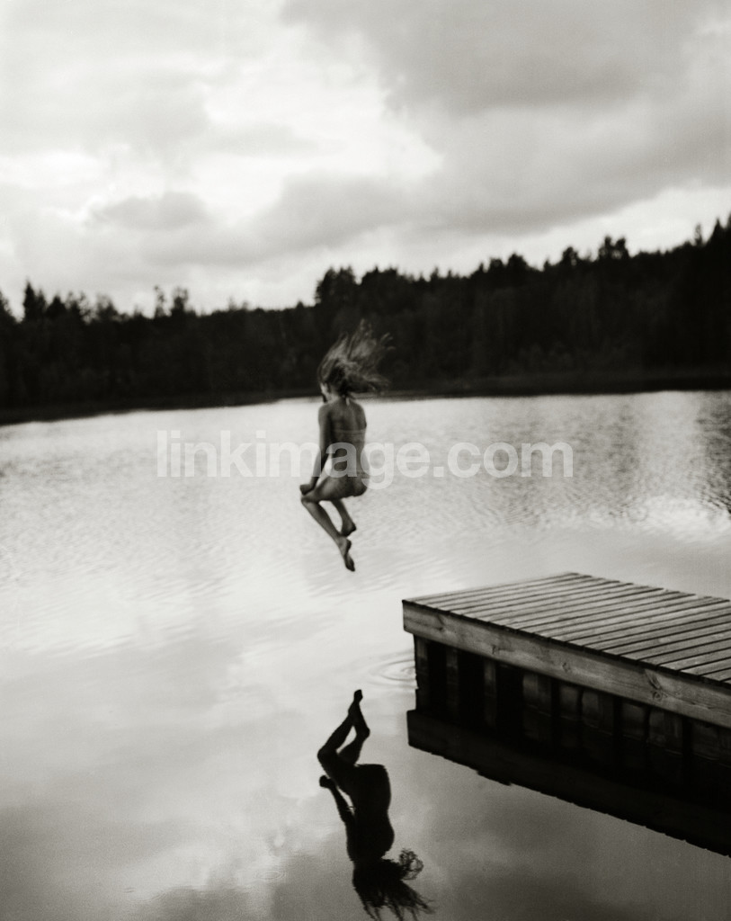 - bath, bridge, jump, shadow, mirror polished, water, sky, forest, swim, reflection