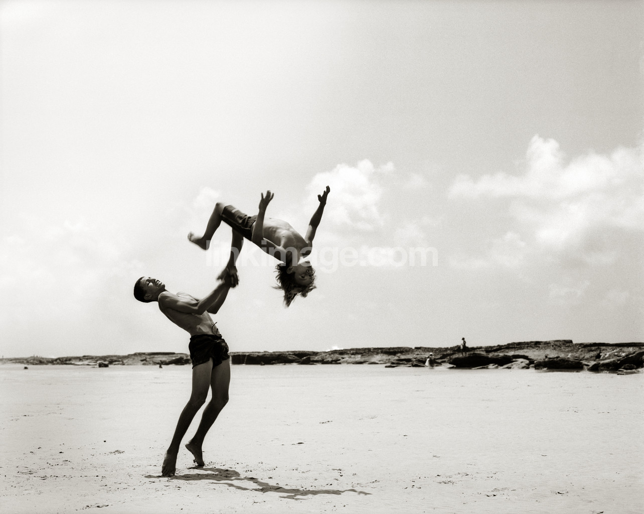 - shore, roll, volts, sand, two, persons, swimming trunks, acrobatics, cooperation, train
