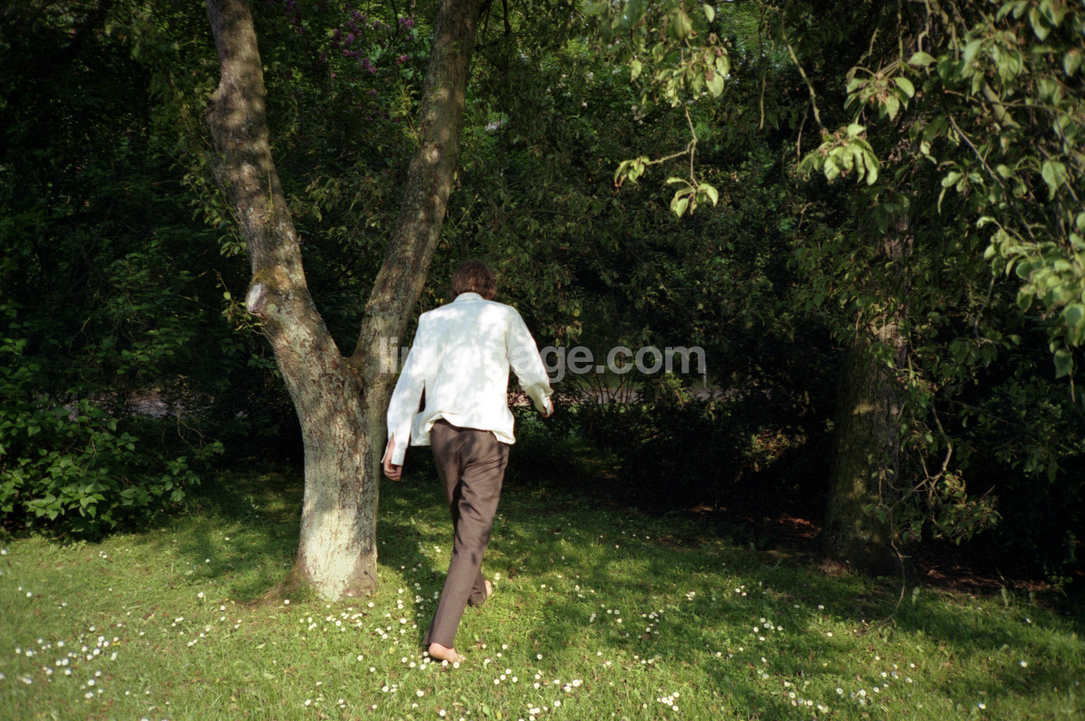 tree, step, walk, disappear, greenery, alone, direction, forward, go, leaf, nature, human, barefoot