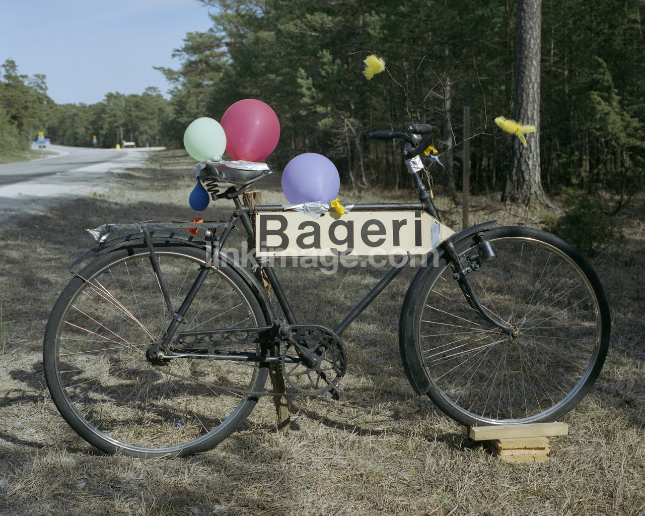cycle, easter, bakery, balloons, feast, forest, road, sign, business, text, information