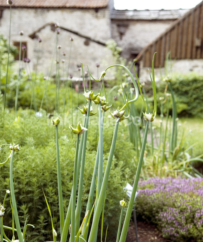 - herb garden, garden, herbs, onions, luftlök, culture, yard, house, plants