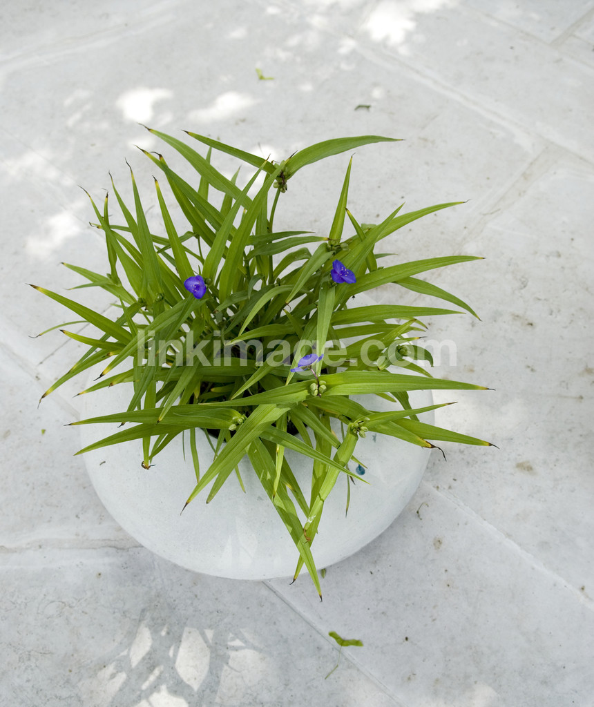 - spiderwort, pot, concrete, plant, garden, flower, floor