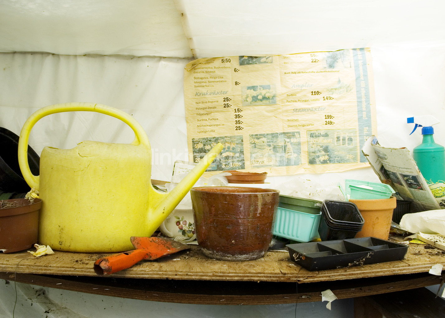 - greenhouse, decay, garden, watering can, plants, jars, still life, growing