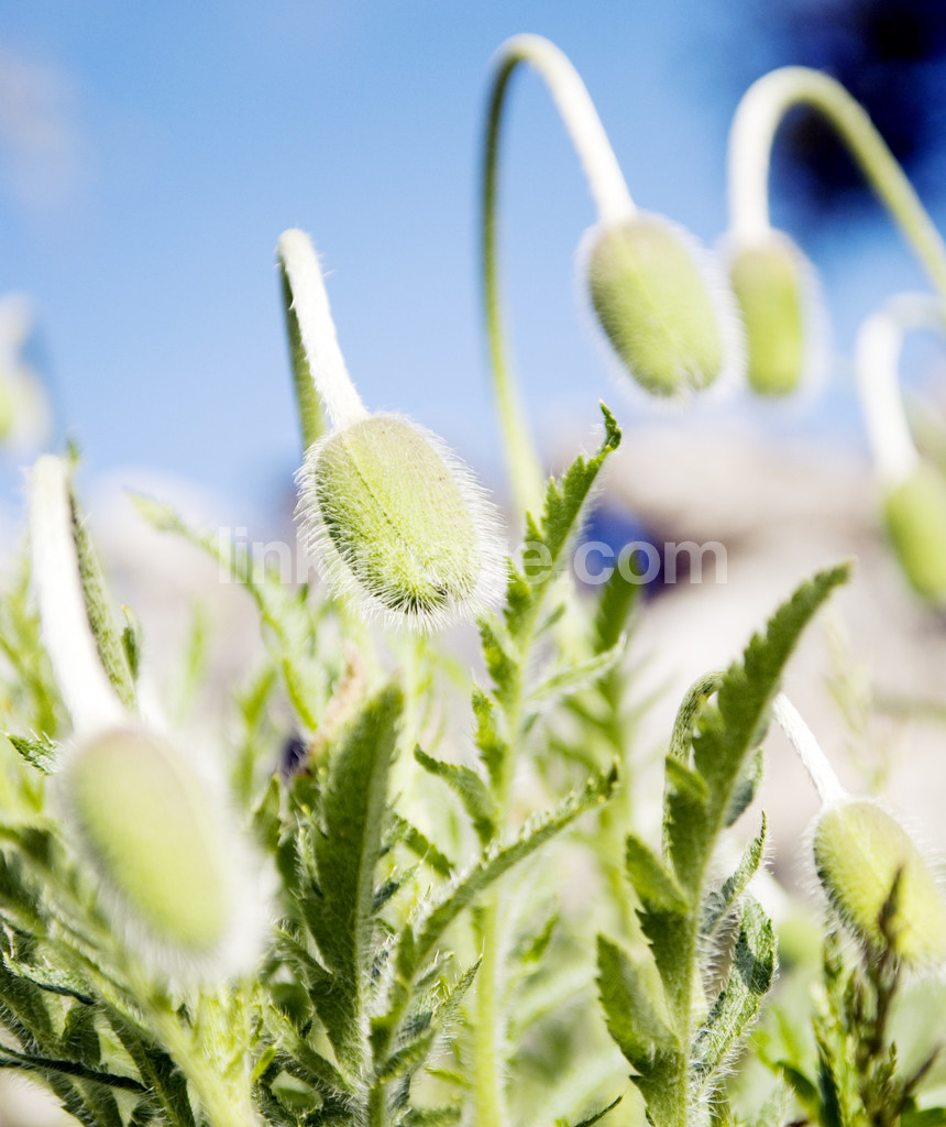 - Poppy buds in close-up.
