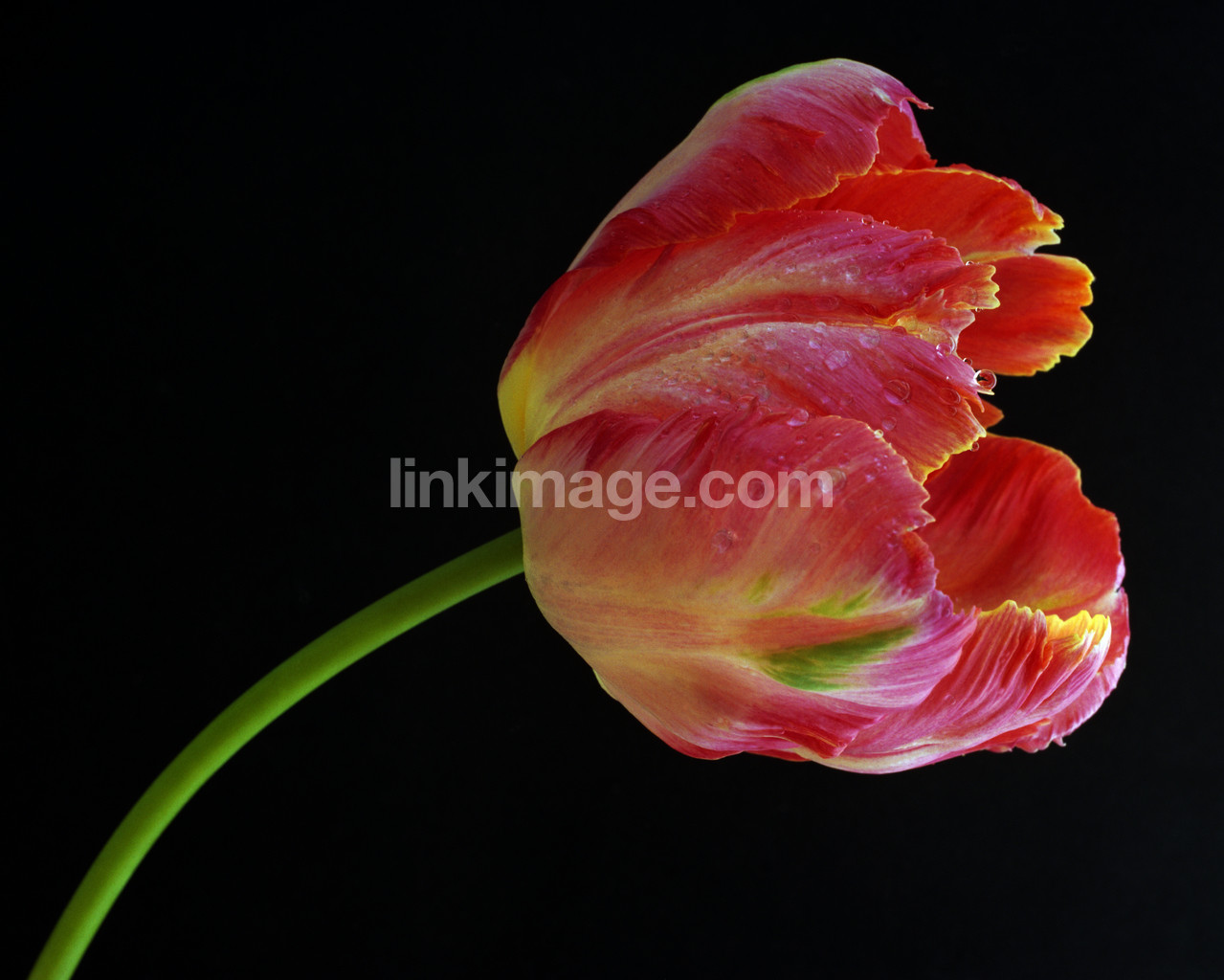 tulips, red, orange, green, yellow, water drops, flower, isolated, petal, detail, close-up
