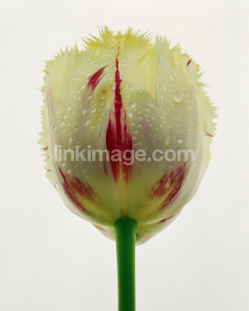 tulips, yellow, red, green, frayed, flower, water drops, stalk, isolated, petal, detail, close-up