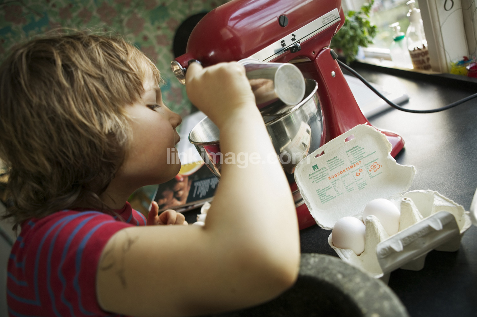 measure, boy, bake, watch, try, kitchen, cake, eggs, cook, food, whisk, children