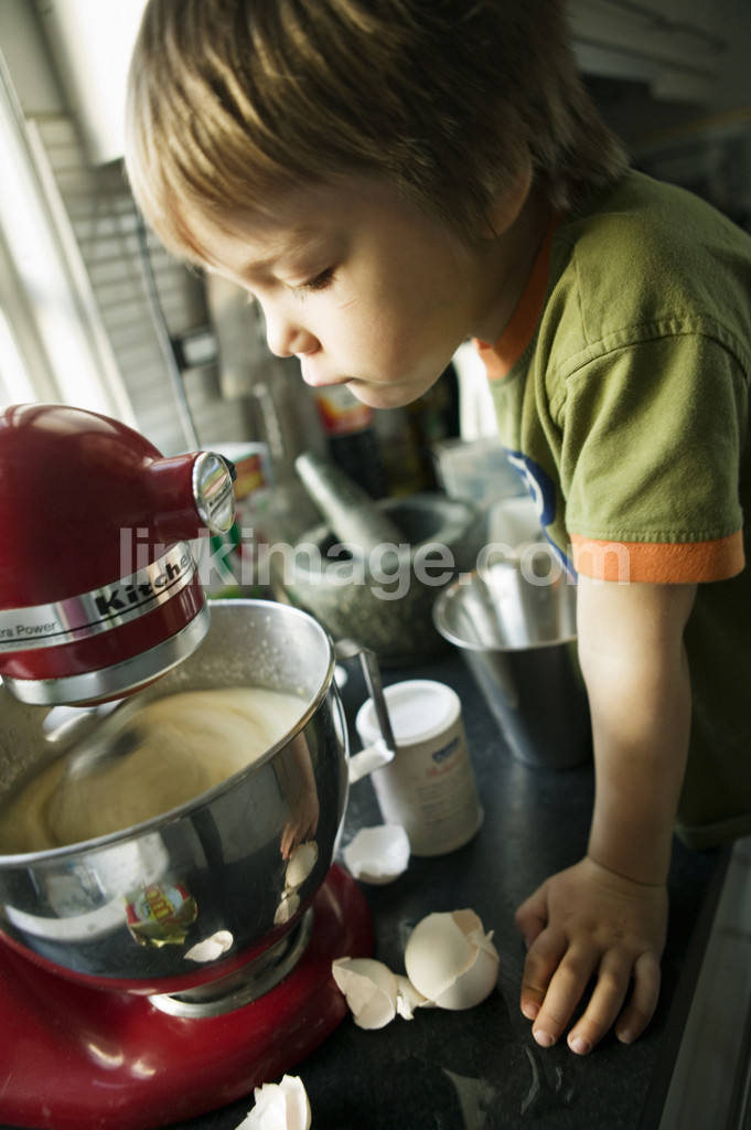 children, boy, curious, kitchen, watch, wait, bake, observe official, eggshell, tilt, mortar, eggs