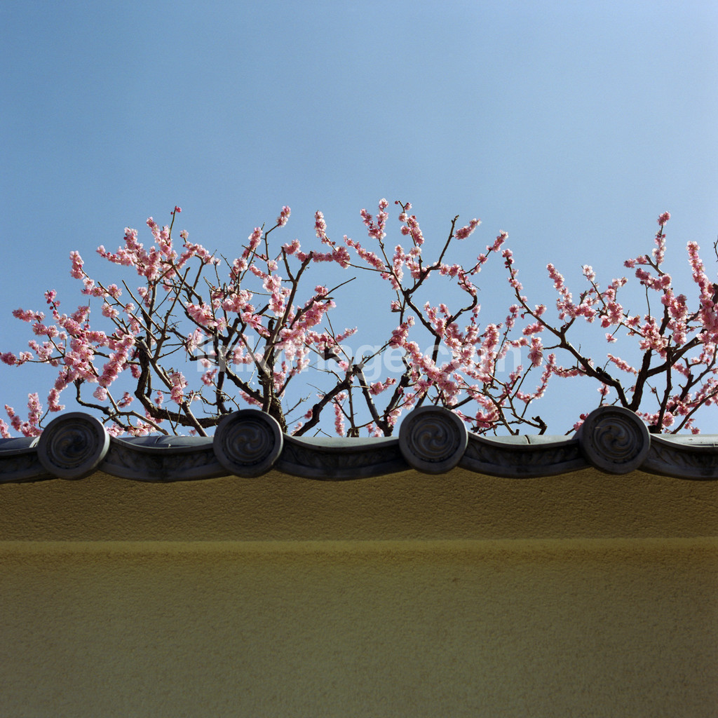 plum blossoms, plum tree, wall, garden, blue, sky, bommor, bloom, pink, ceiling, branches