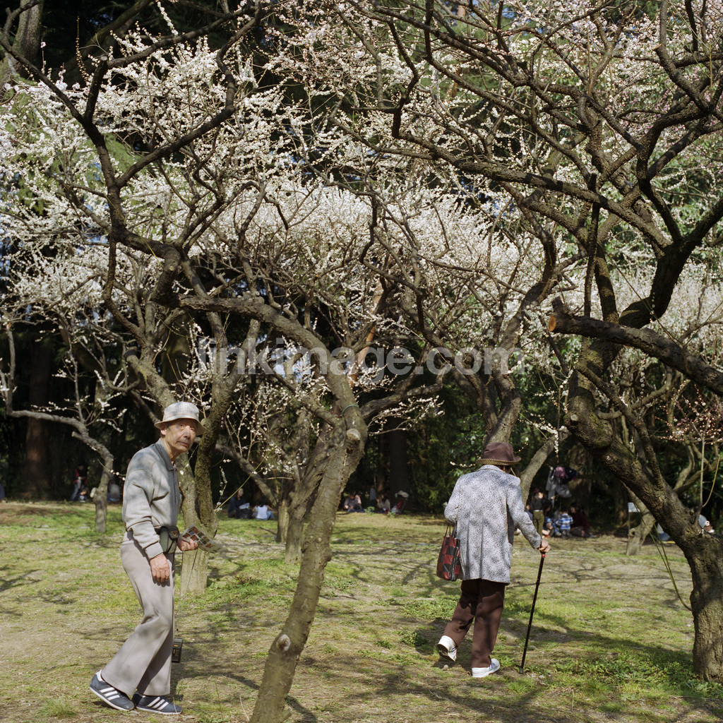 - plommonblommning, festival, spring, aunt, uncle, older, park, old woman, strawberry, hat, tree, rod, cane