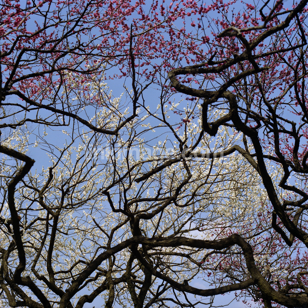 - plum blossoms, plum tree, tree, branches, red, leaf, sky, blue