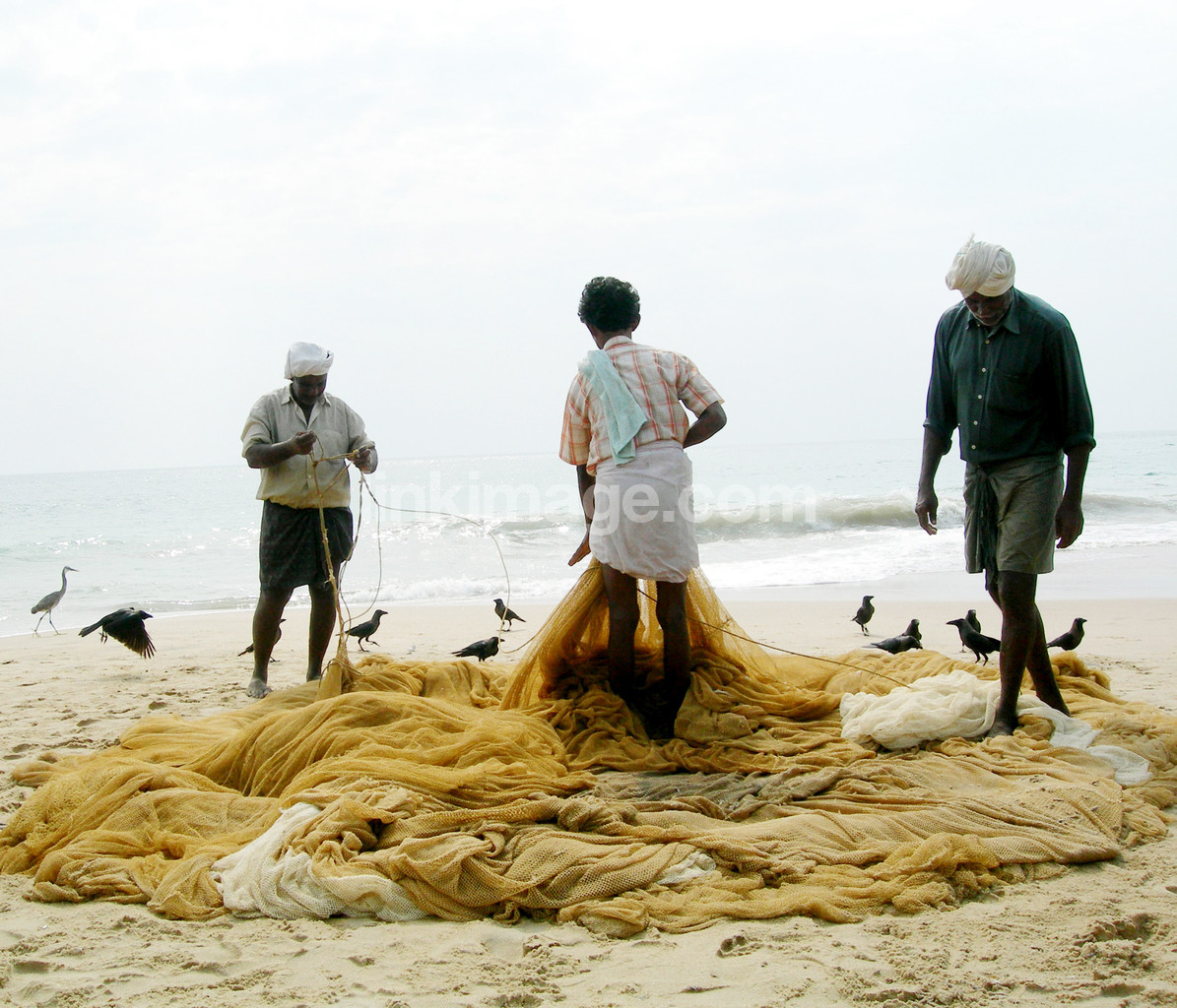 - Fishermen on the beach, india.