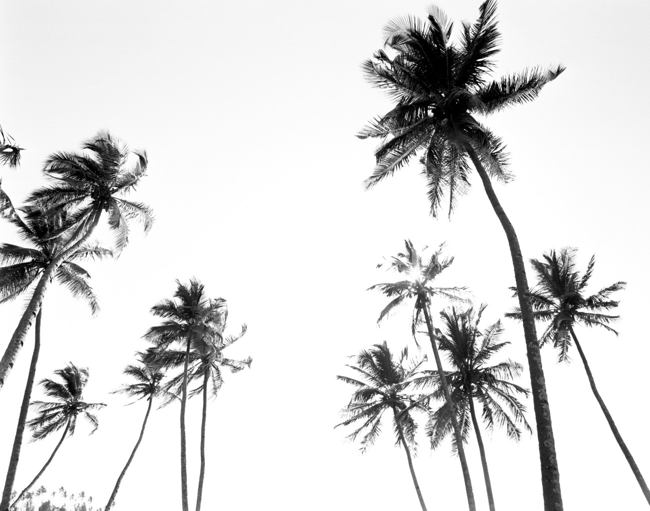 - Palm trees in silhouette against the sky, india.