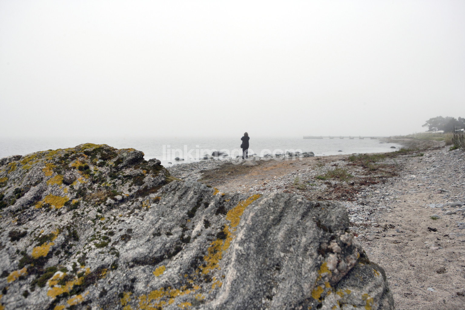 archipelago, fall, island, cut, stone, figure, female, shore, sea, fog, alone, walk, sl2894