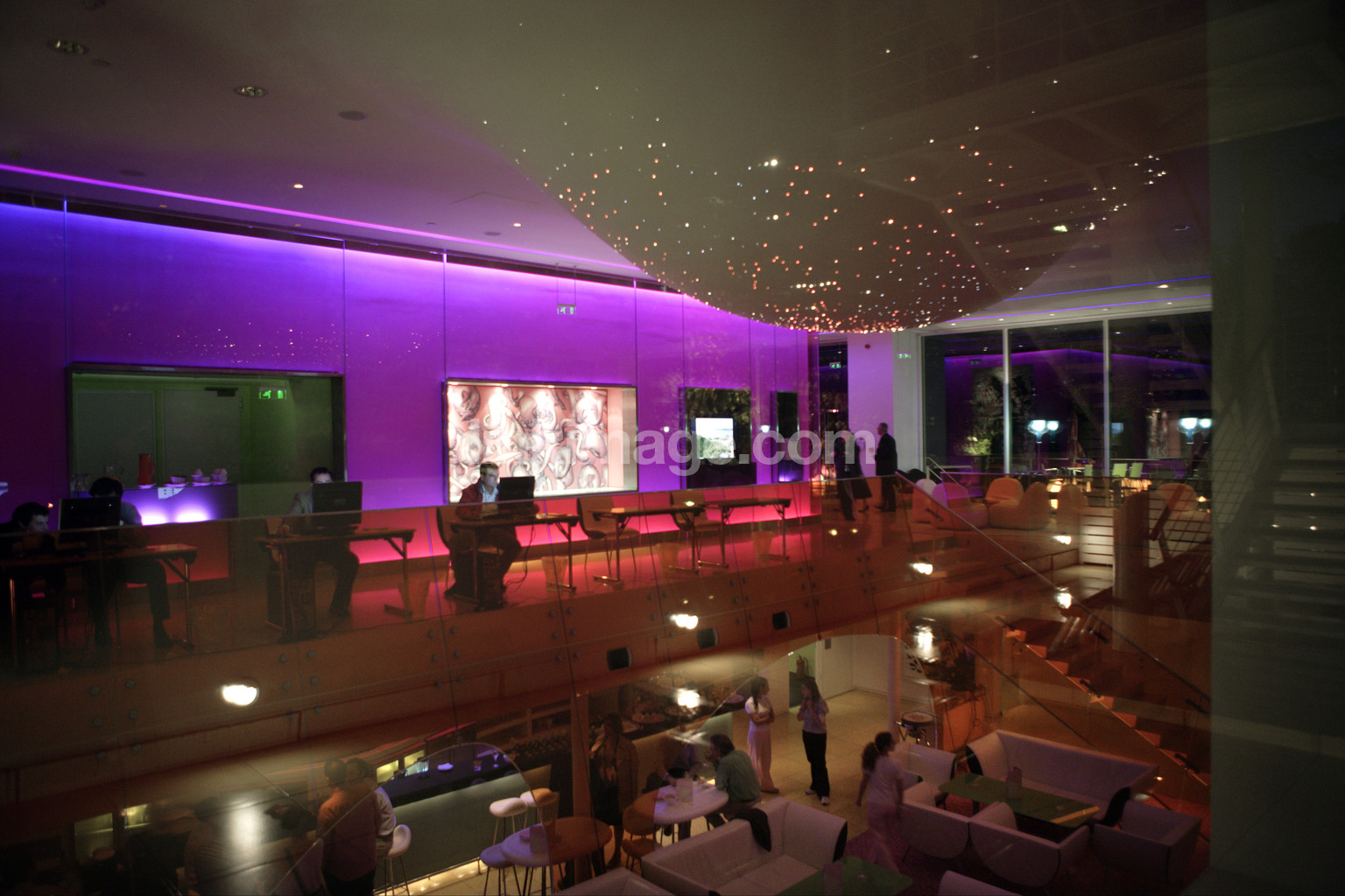 - hotel, design, restaurant, bar, table, chairs, sofas, lighting, art, glass, people, work, computer, computers, internet, neon colors, sl3043