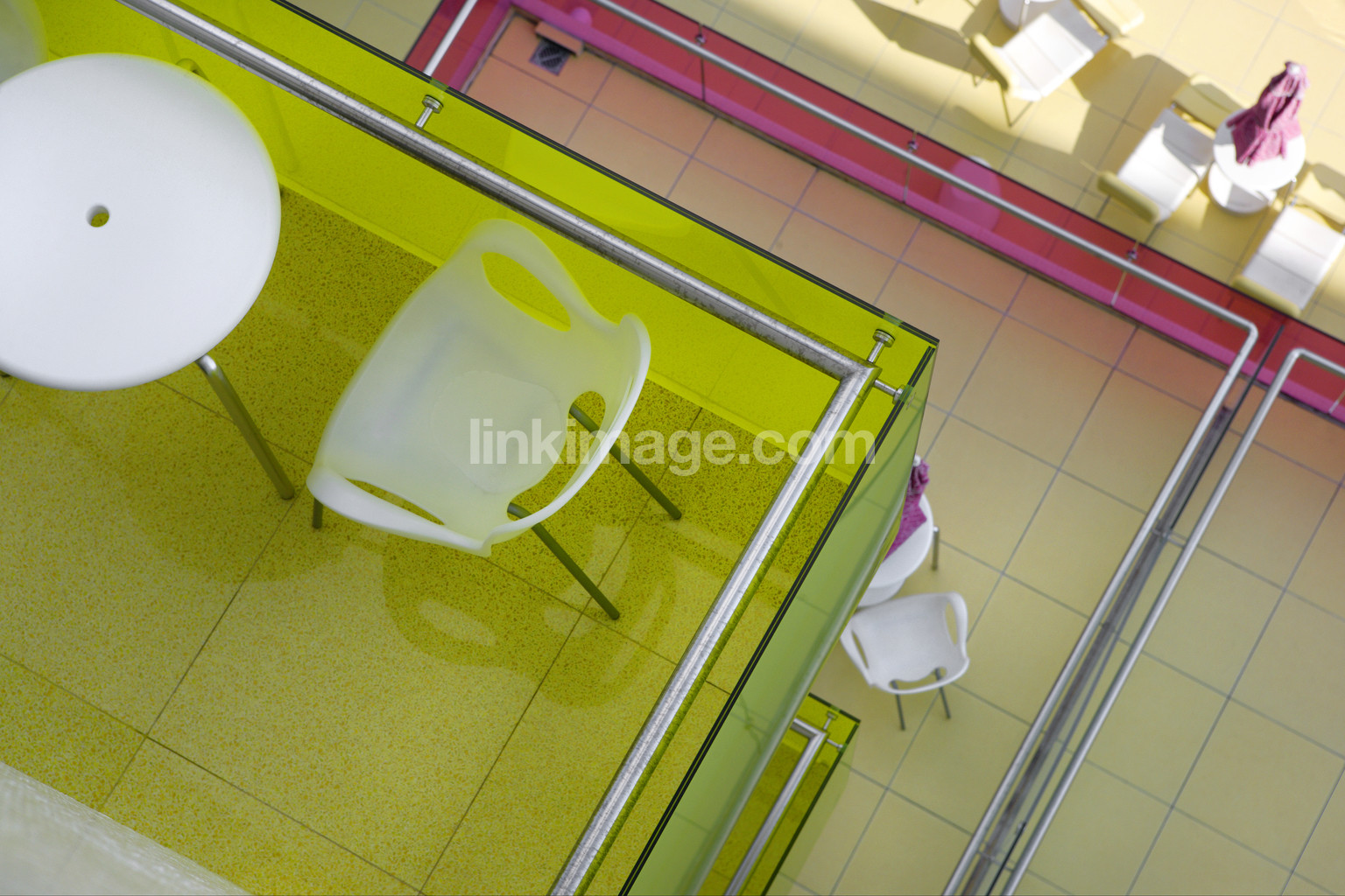 - balcony, design, table, chairs, railing, hand railing, clinkers, neon colors, sl3084
