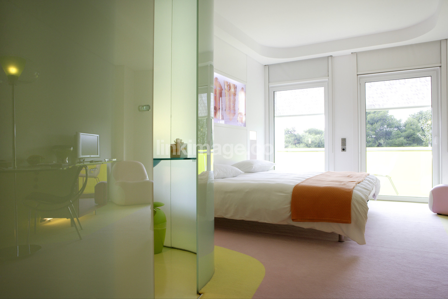 - rates, bed, table, chair, computer, balcony, door entry, reflection, mat, interior, interior, design, neon colors, sl3090