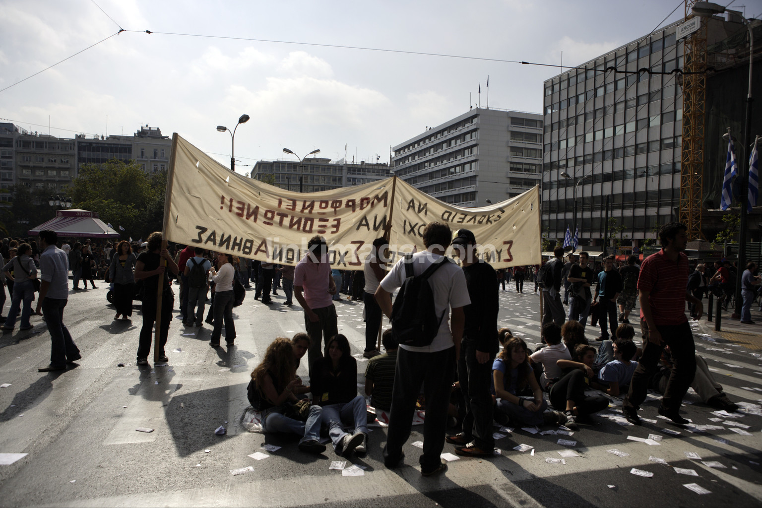 - demonstration, crowd, movement, banner, banners, dissatisfaction, policy, littering, sl3152