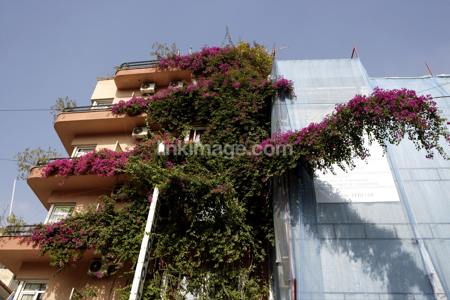 - house, building, balconies, plant, serpentine, climber, flowers, summer, sl3155
