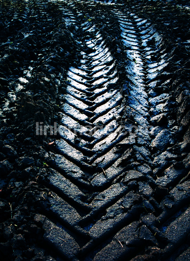 - Tractor tracks in a field.