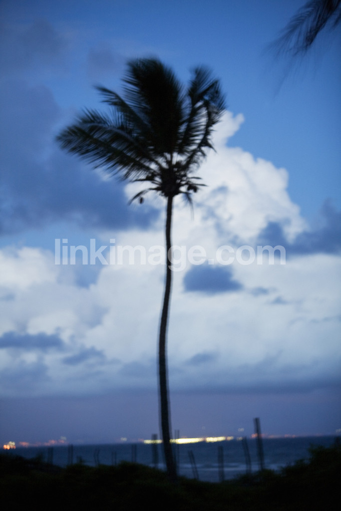 palm, night, city, wind, abroad, cloud, weather, blister, water, sea, dusk