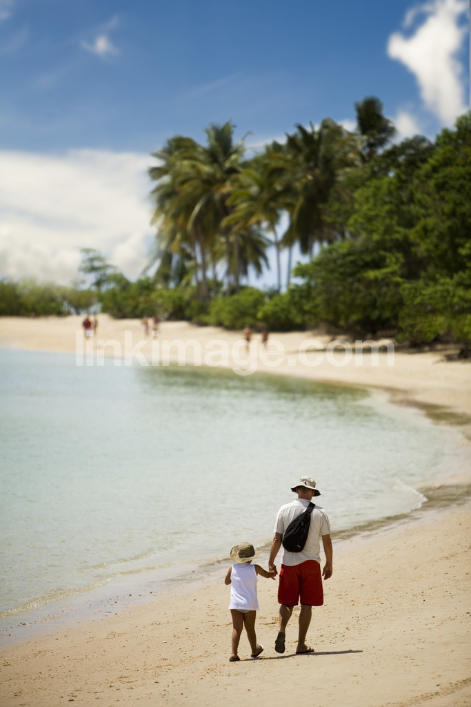 children, dad, adults, holiday, shore, together, island, walk, sun, hot, go, hand, bay, sea
