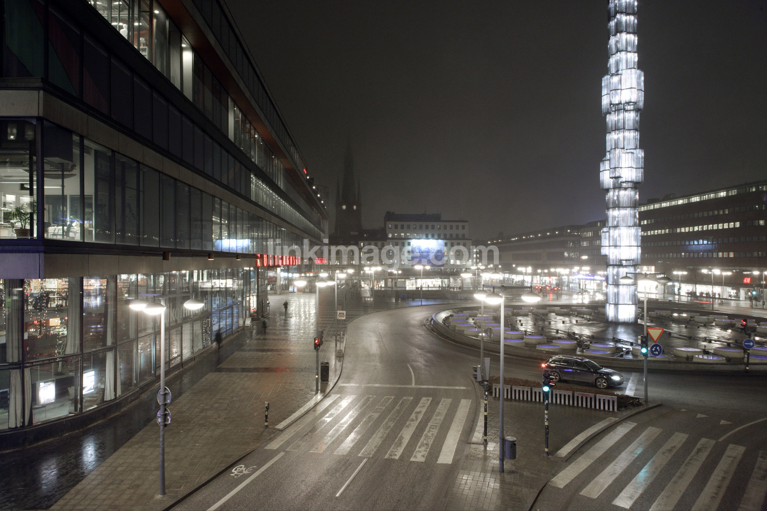 - stockholm, city, rain, street, sergelstorg, the arts, roundabout, light, lights, sl3972