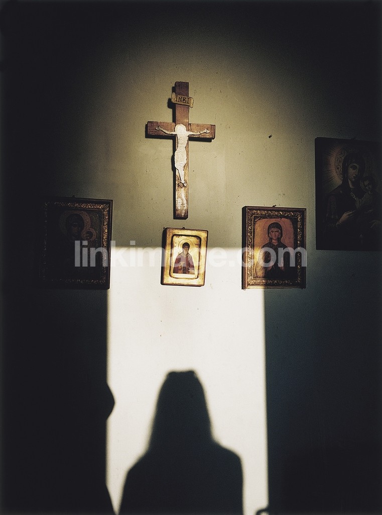 - doorway, icon, icons, christian, christianity, christ, crucifix, man, religion, shadow