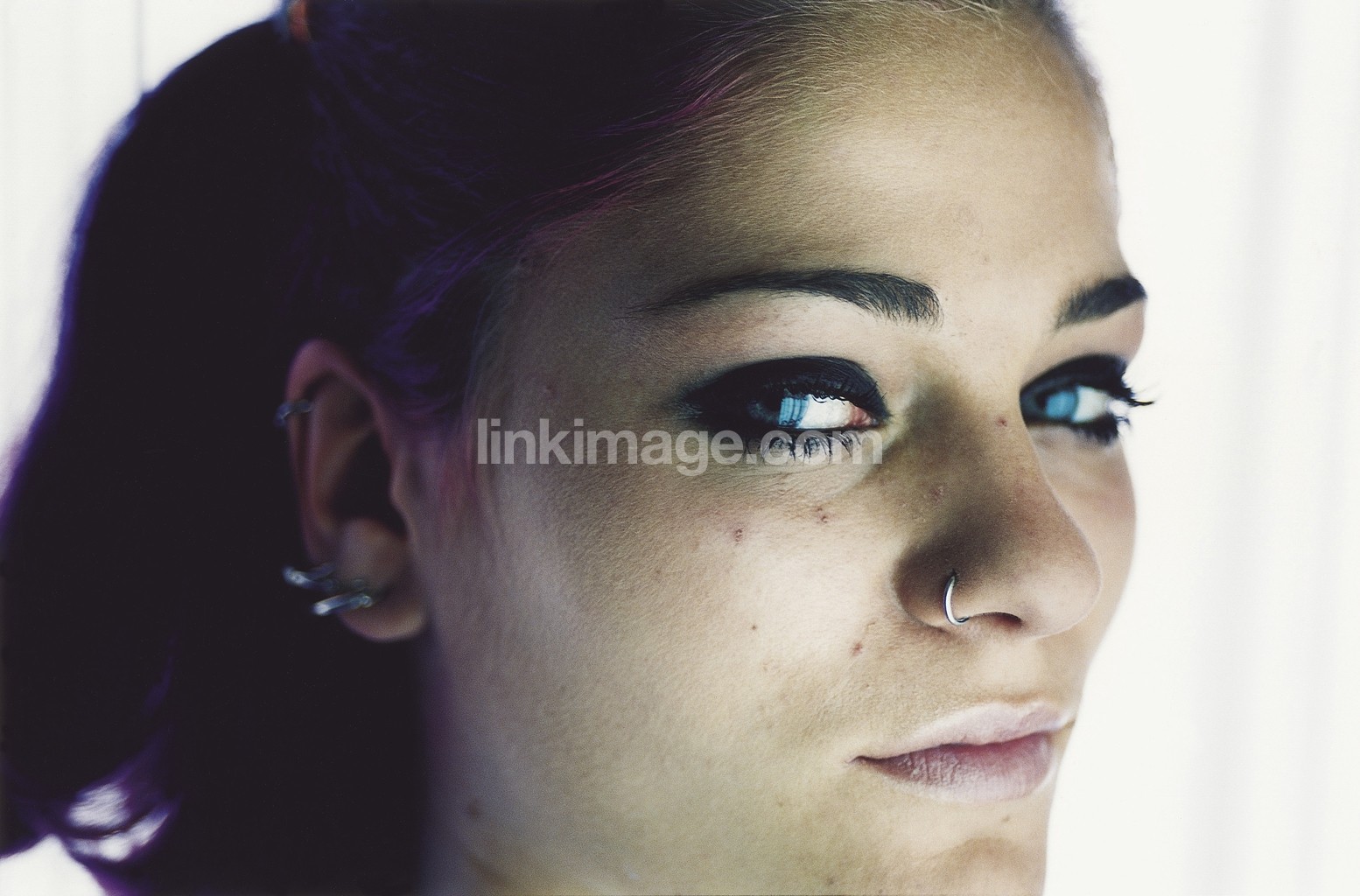 - face, gaze, clothes, lifestyle, female, man, nose ring, pierced, piercing, portrait, rings, makeup, rouged, solarium, girl, young, youth, eyeshadow, earrings, watching pornographic
