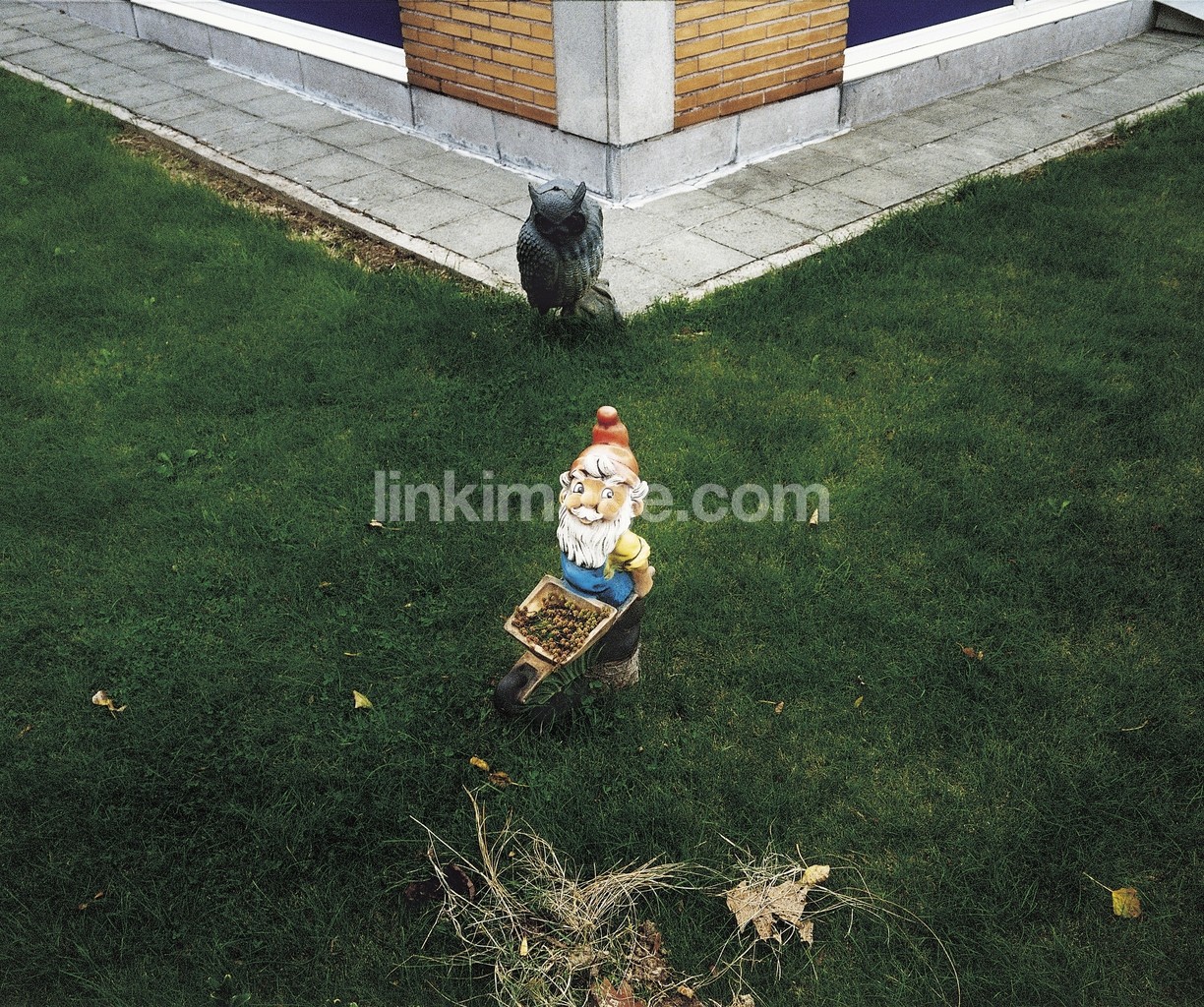 - garden, garden ornaments, brownie, garden gnome, statue, owl, wheelbarrow, hustomt