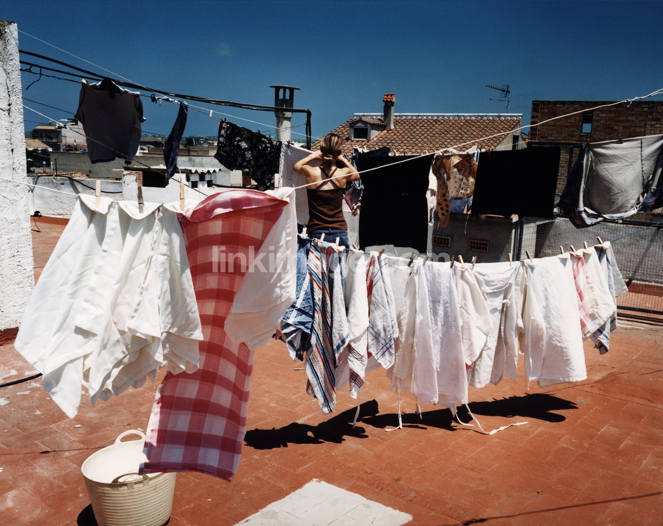 - wash, housework, washing line, on, drying, rooftops, female, bag, laundry basket